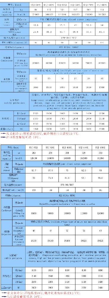 風冷式螺桿冷水機參數