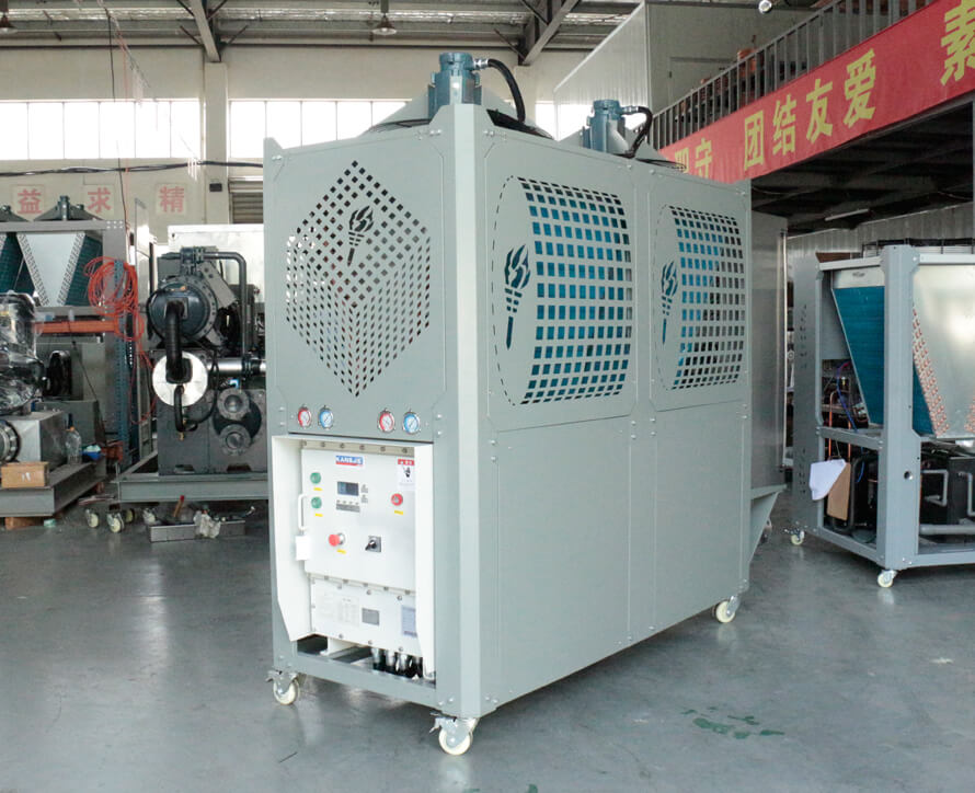 5、風(fēng)冷式研磨機(jī)專用冷水機(jī)通過(guò)風(fēng)扇以空氣作為冷凝方式的冷水機(jī),箱式輸出功率從3HP~50HP,螺桿式輸出功率從30HP~220HP;