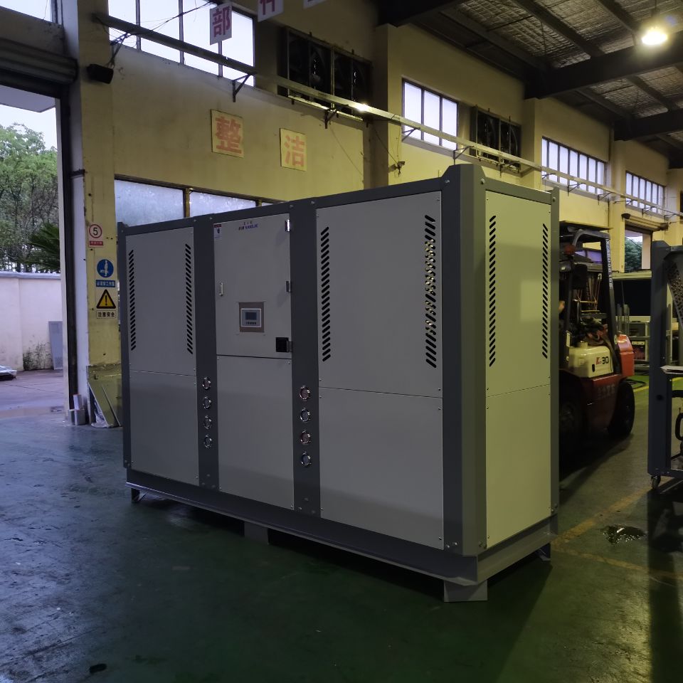 這些溫度范圍的新材料冷水機(jī)按冷卻方式分有風(fēng)冷式和水冷式,風(fēng)冷式是通過風(fēng)扇以空氣為冷凝方式,需擺放于通風(fēng)好的環(huán)境;水冷式是通過冷卻塔以冷卻循環(huán)水為冷凝方式,需配合冷卻塔使用。無論風(fēng)冷式還是水冷式都有箱型和螺桿型。